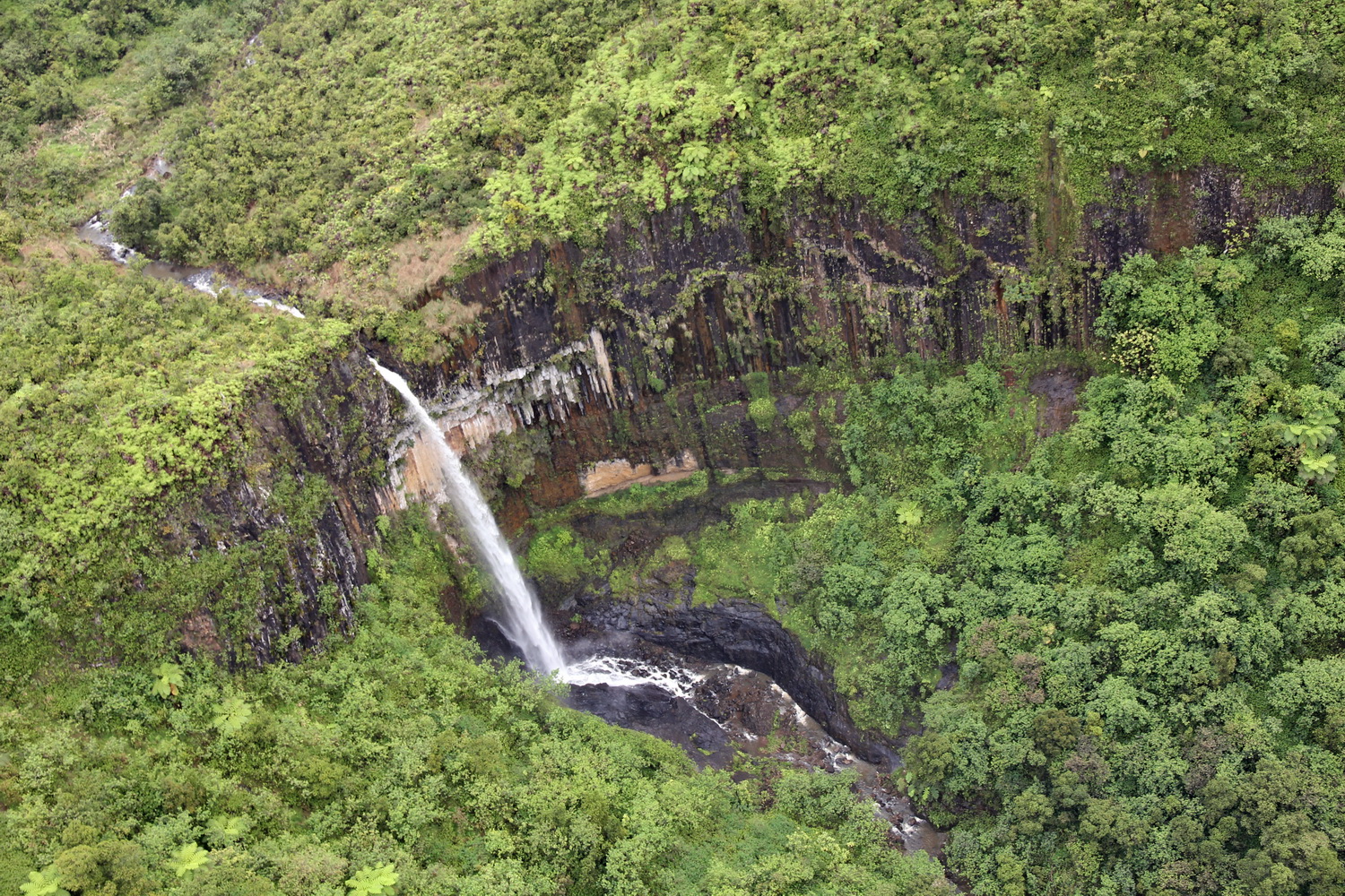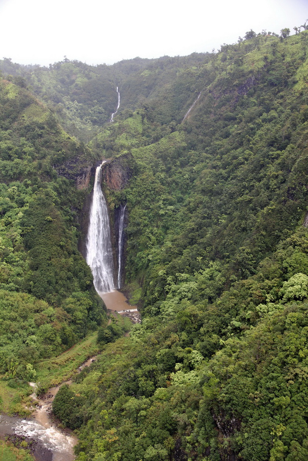 Waipo'o Falls. Auf einem Felsen mit toller Aussicht nehmen wir unseren