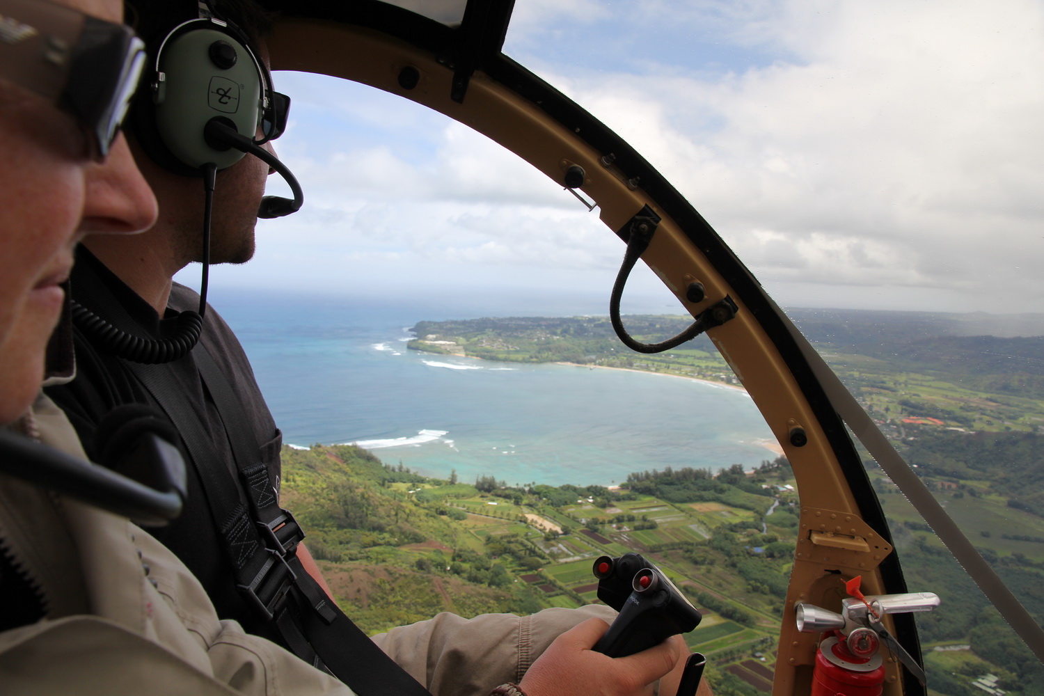 in der Mitte eingeklemmt zwischen dem Piloten und mir auf der rechten