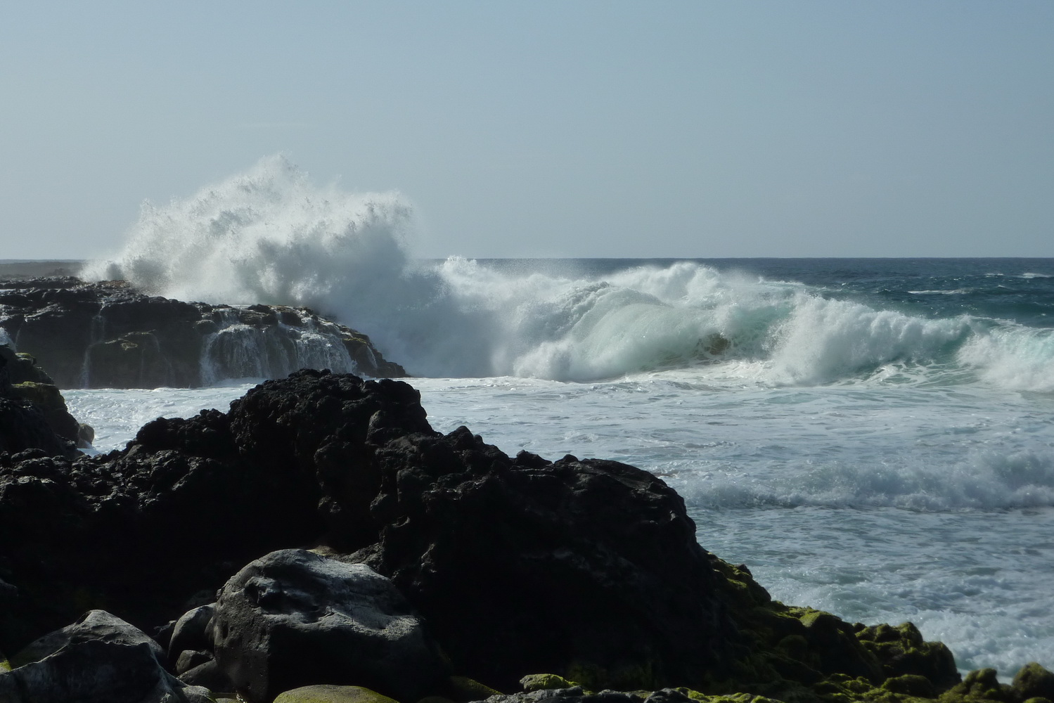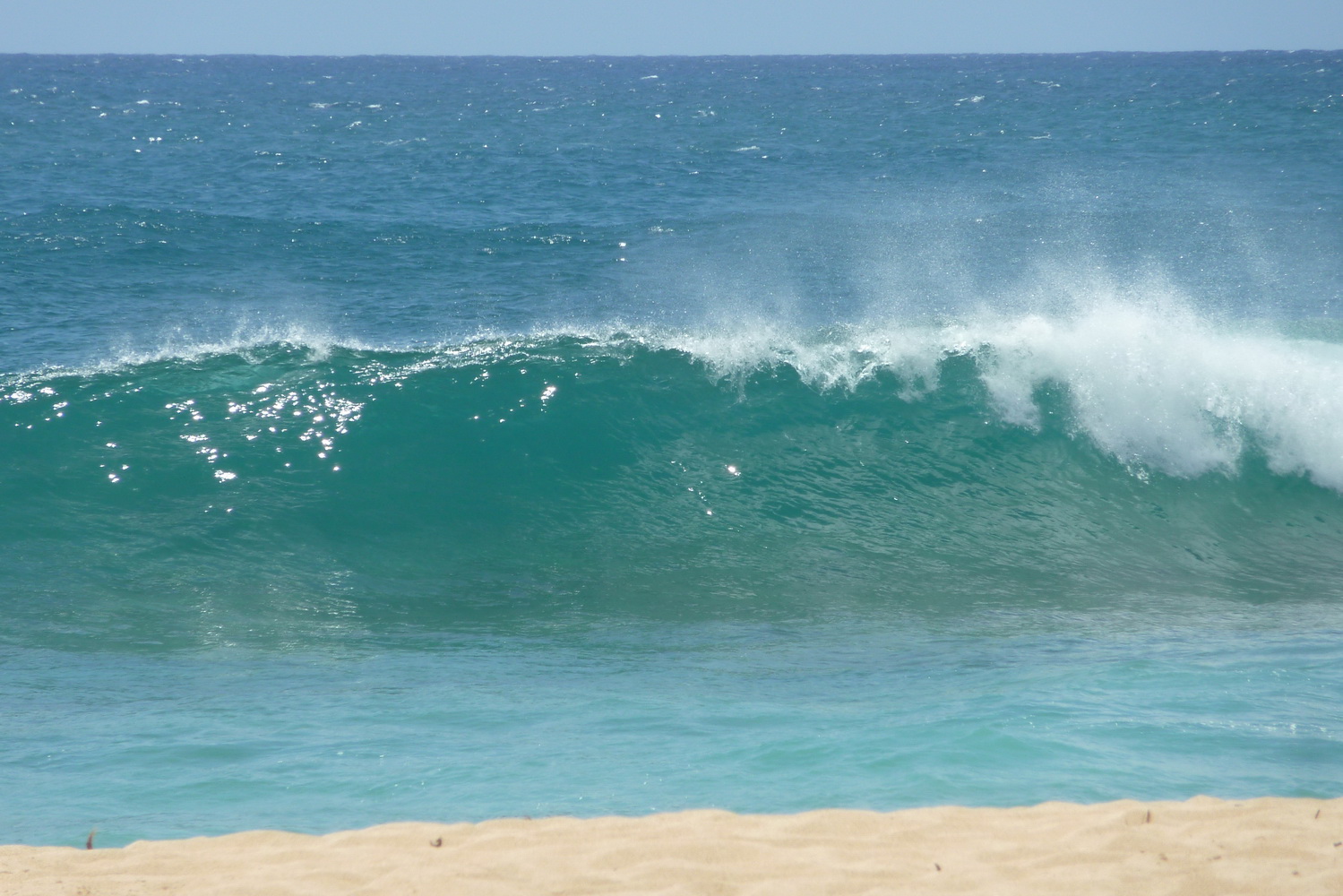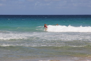 und setzen uns in den Schatten. Wir beobachten die tollen Wellen, die