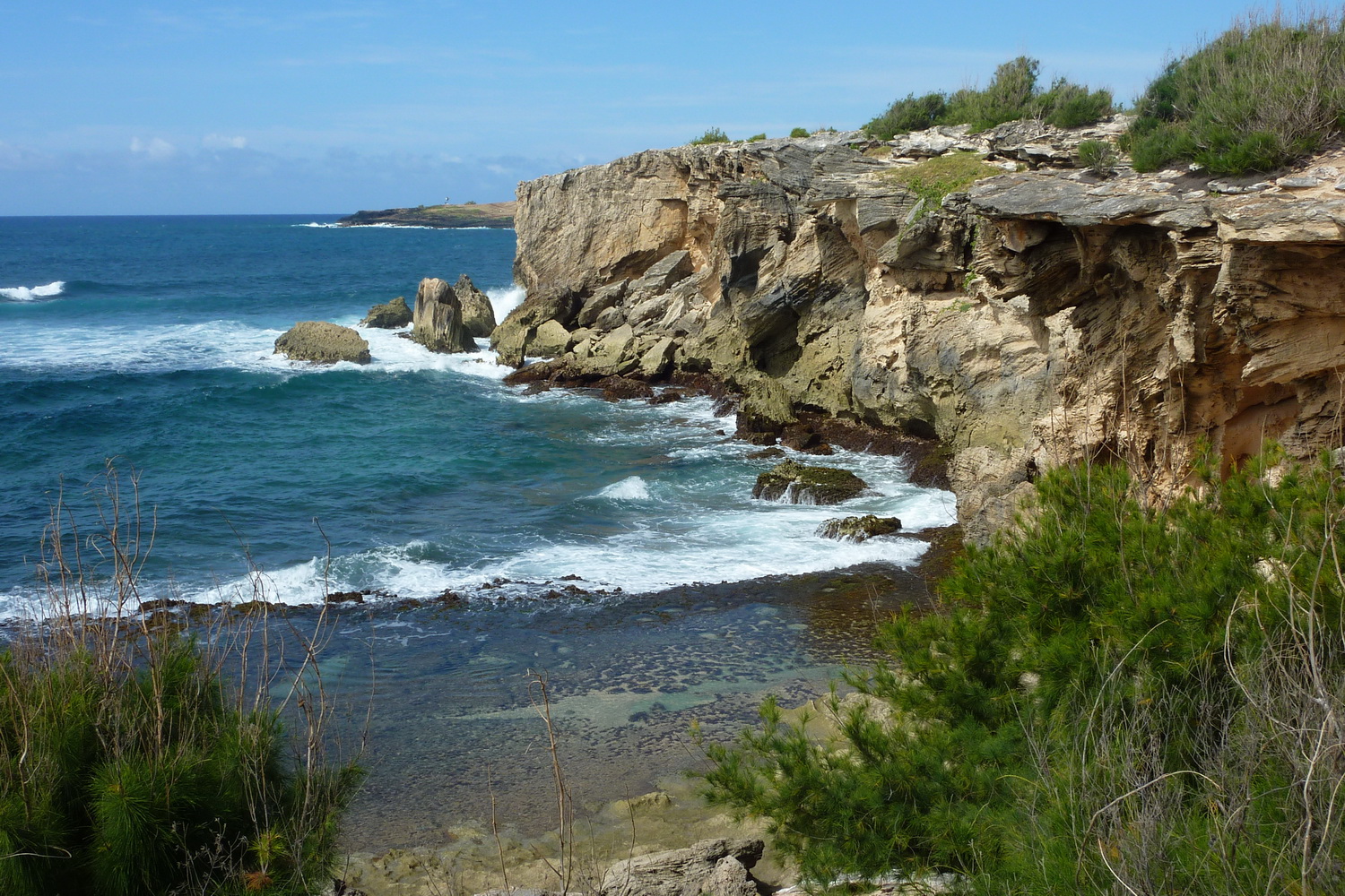 vorbei an vielen schönen Strändenund bizarren Felskulissen landeinwärts.
