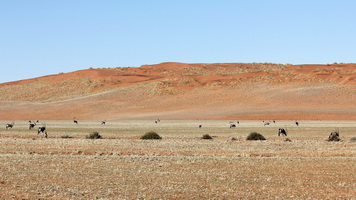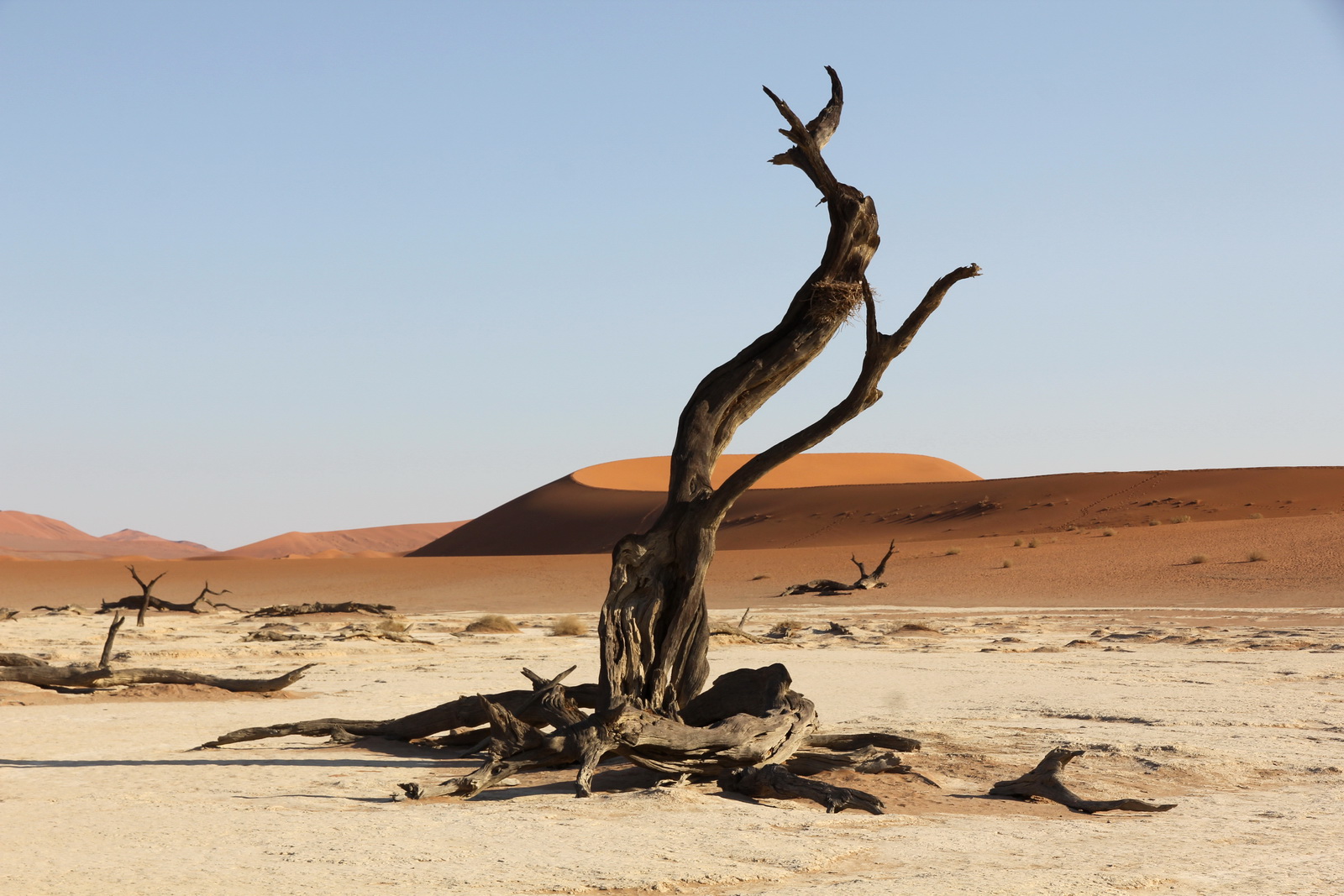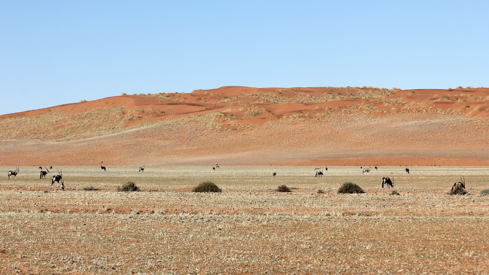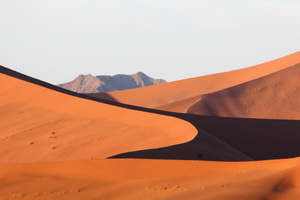das fahle Morgenlicht ab. An Düne 45 (45 km ab Sesriem) sind schon