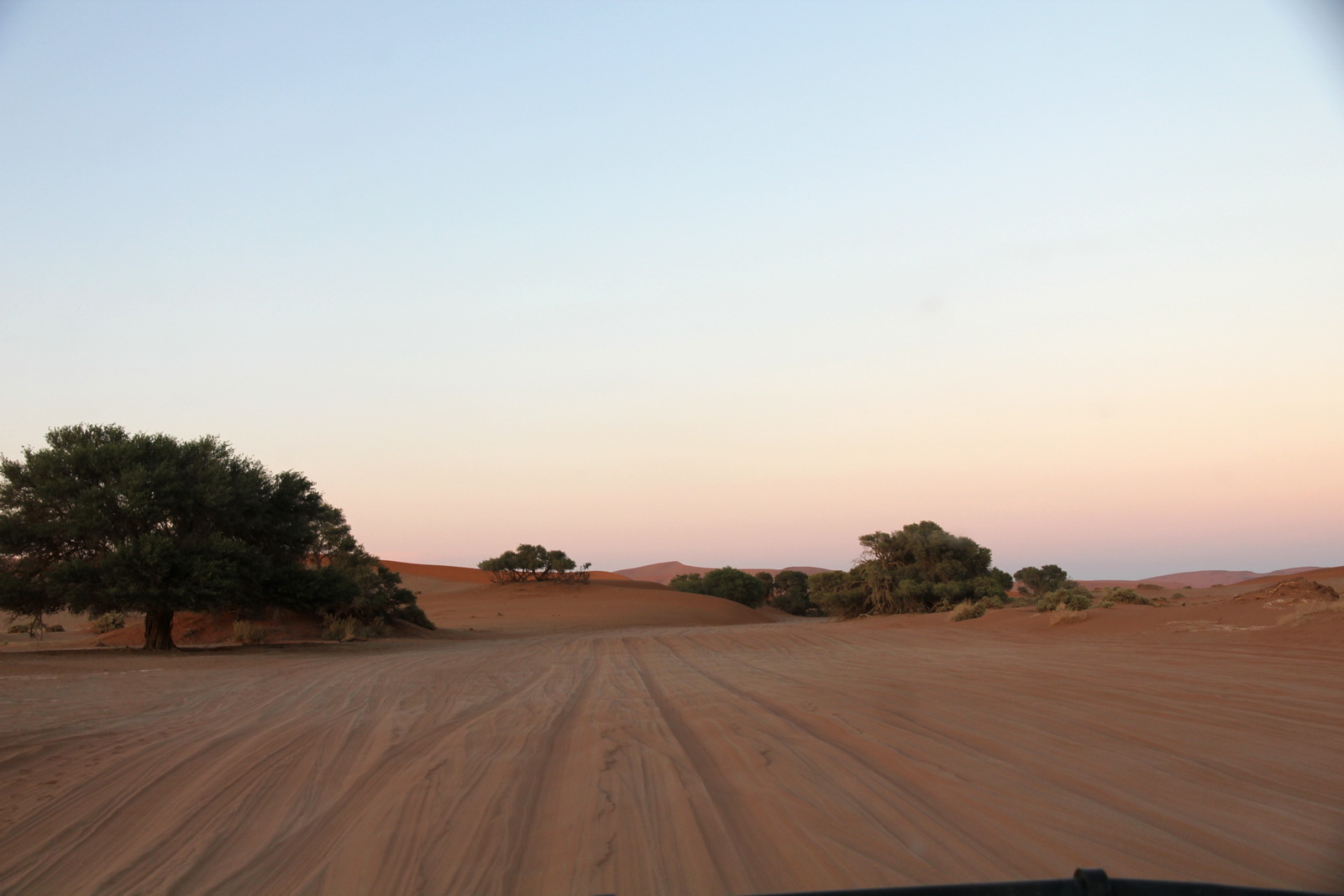 Sossusvlei. Das Tor macht um 5:15 Uhr auf und wir sind 5 min hinter der
