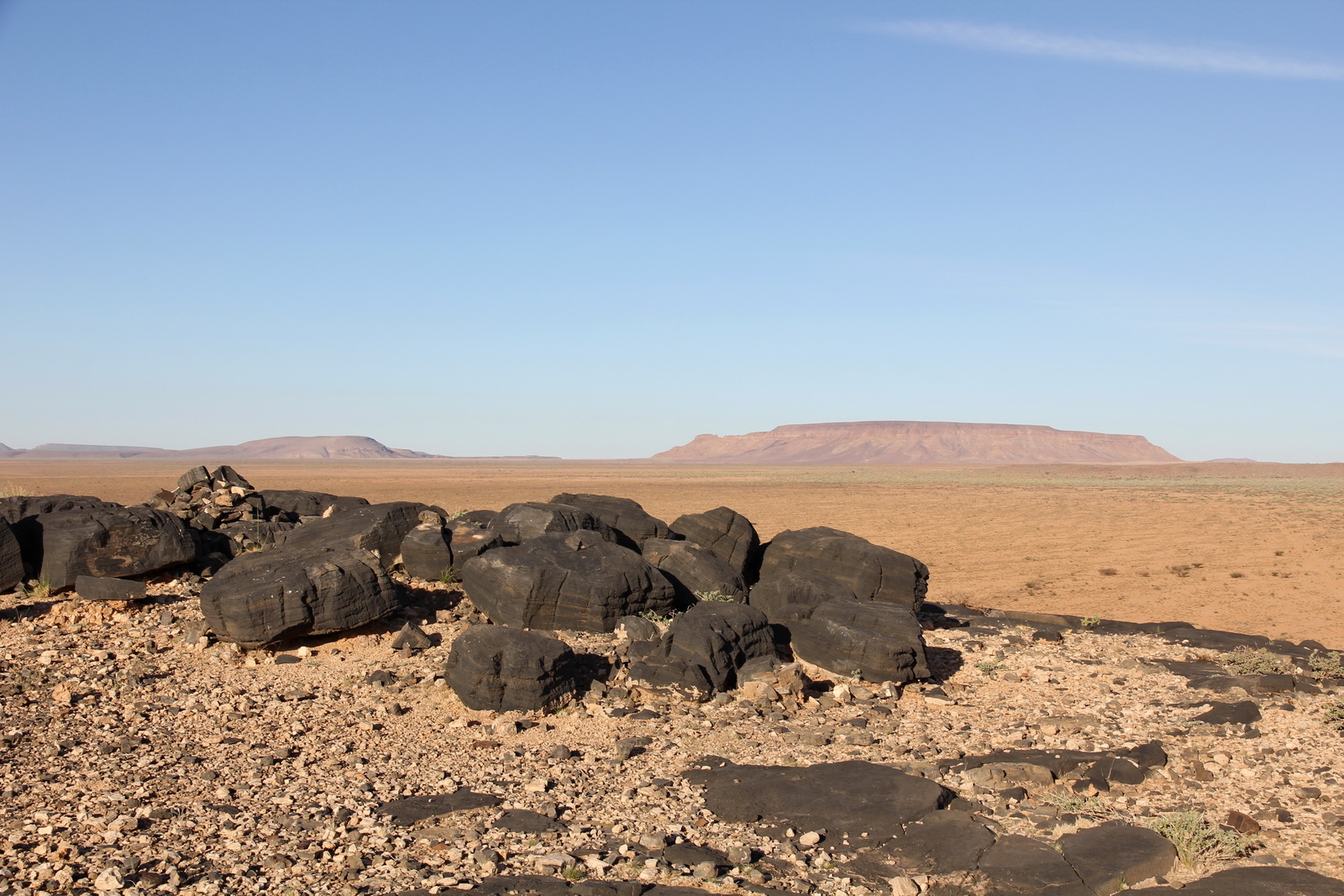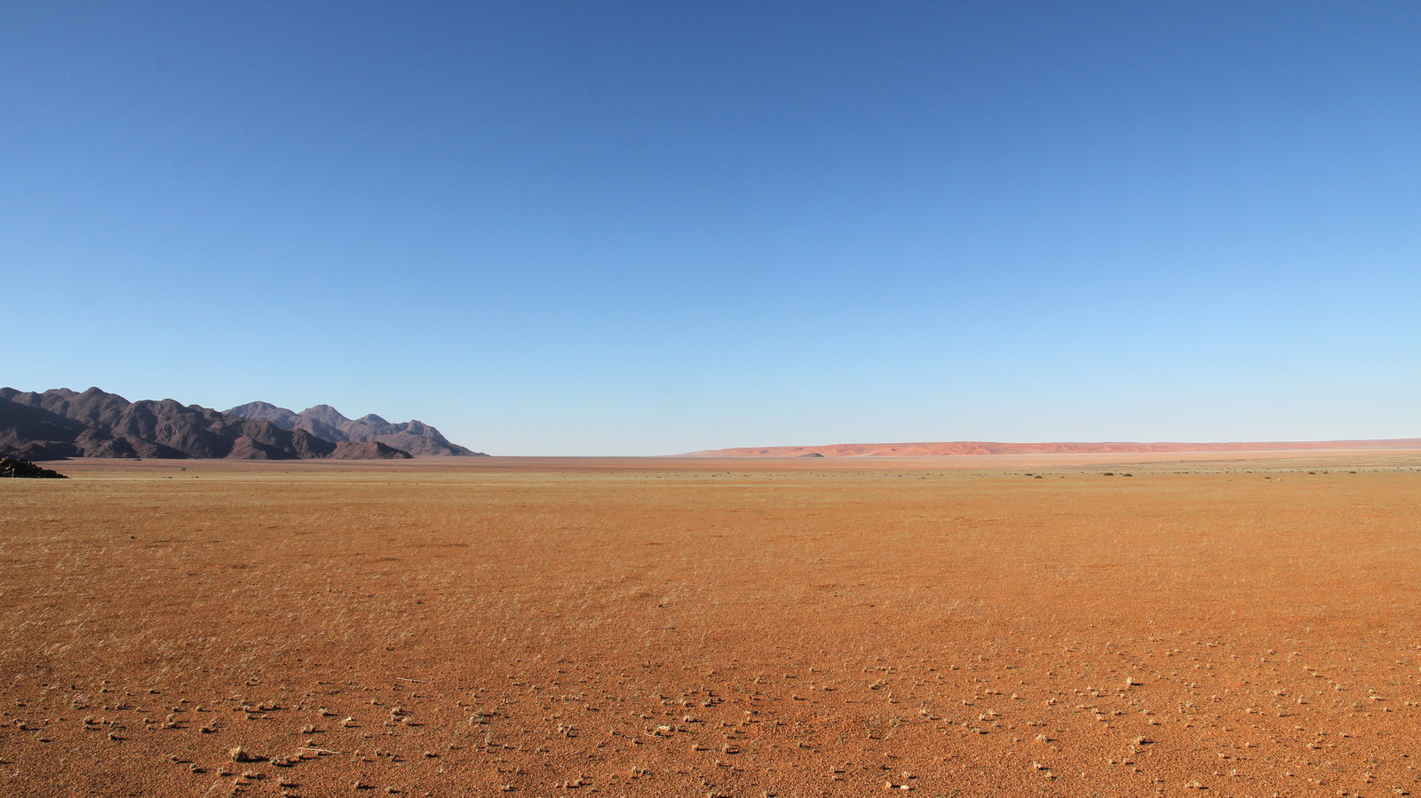 die Landschaft flach und öde, der langweilige Teil der Namib-Wüste