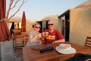 genießen nochmals kurz die Aussicht von der Terasse vom Desert Vista