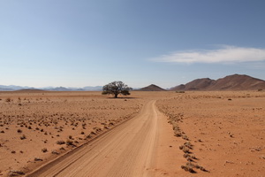 und kurvenreich durch Schluchten und Hügel des Namib Naukluft Parks.