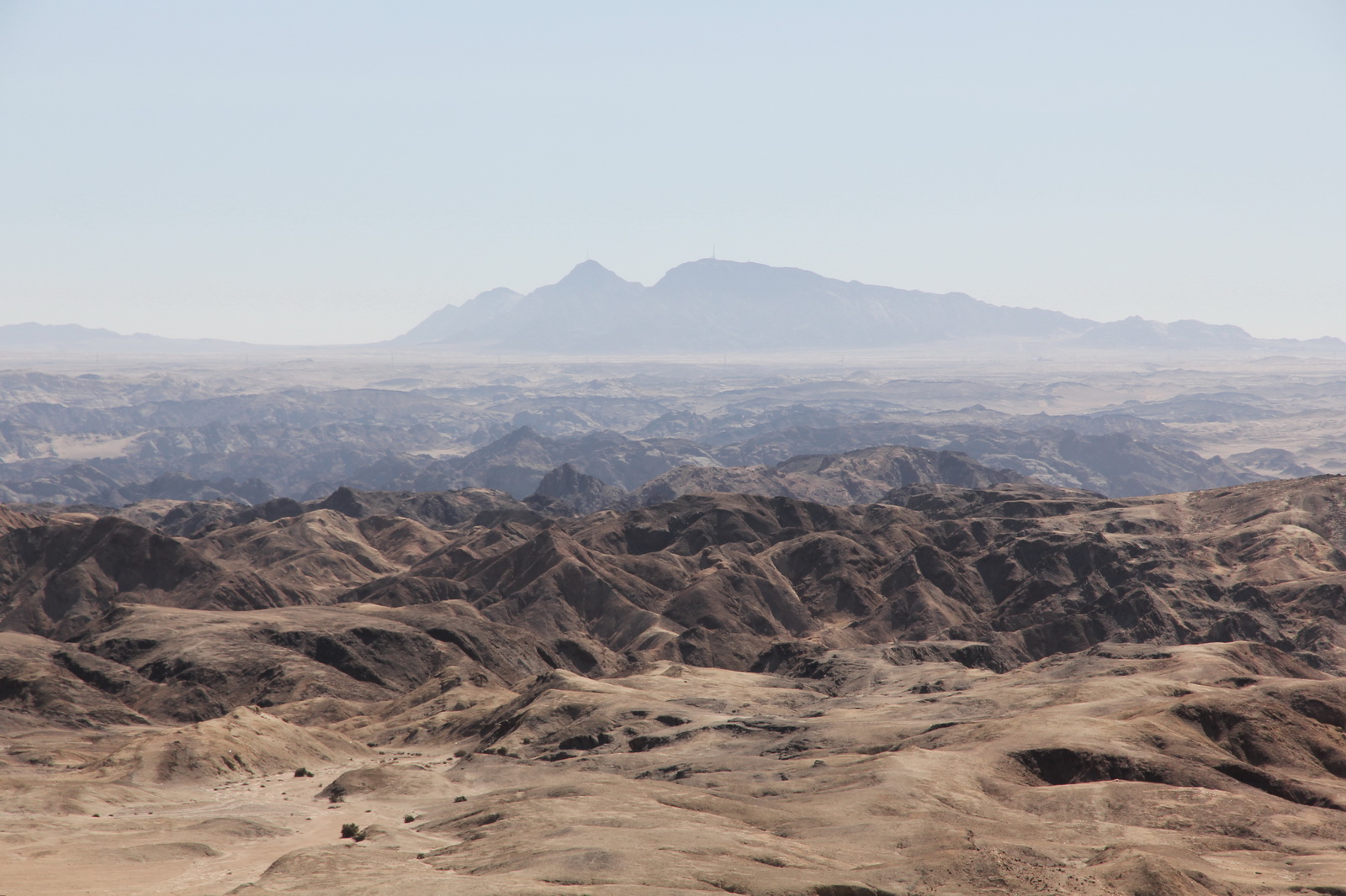 Vorbei am eindrucksvollen Brandberg-Massiv, 2573 m hoch. Hier stürzen