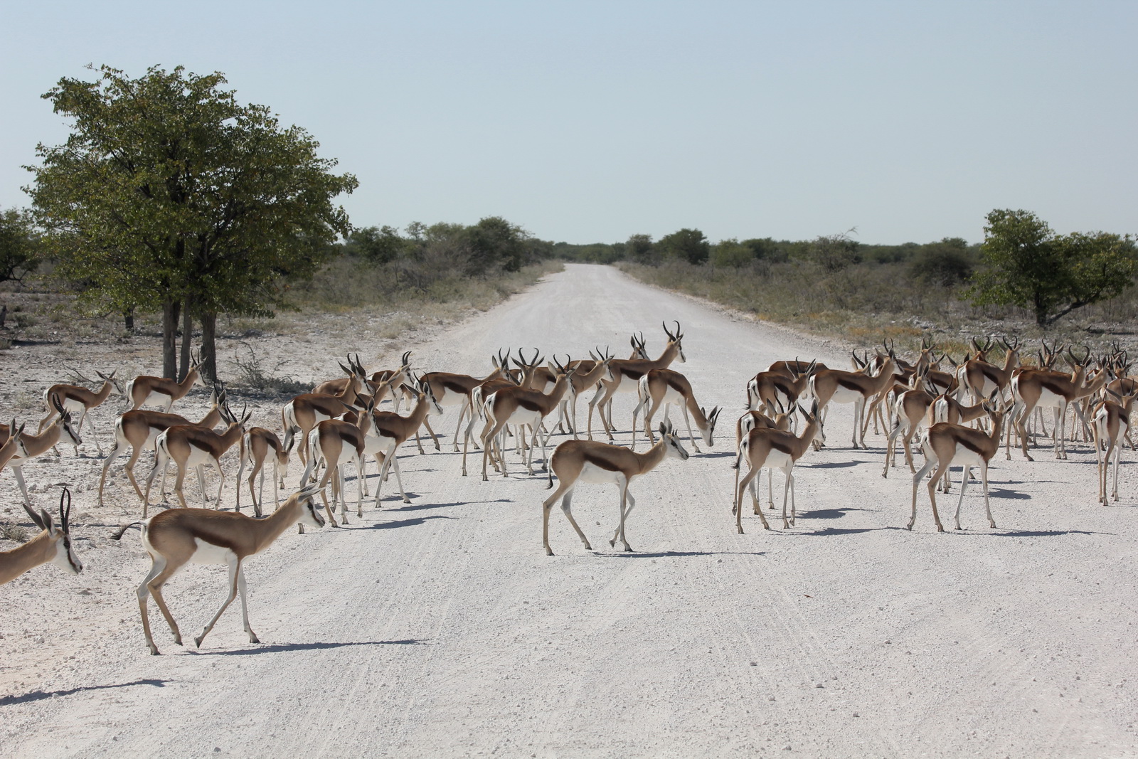 Meute Antilopen die Strasse in weiten Sprüngen Kronenduker? Wir haben sehr gut geschlafen im breiten, weichen Bett bei angenehm kühlen