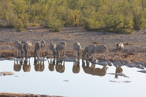 Zebras auf. Und auf dem Pfad flüchten kleine Antilopen vor uns, zu
